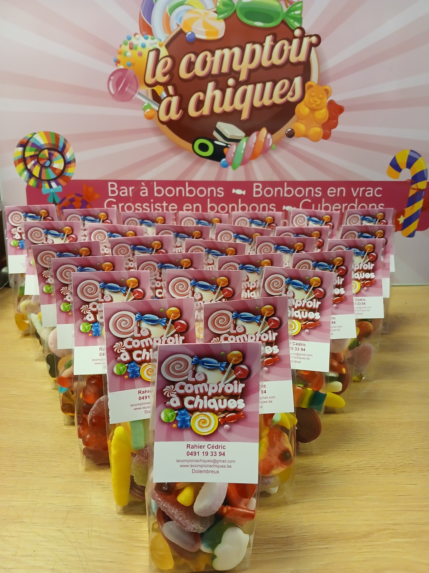 Chaque création est confectionnée avec soin et imagination : gâteaux de chiques, sachets de bonbons, compositions personnalisées…