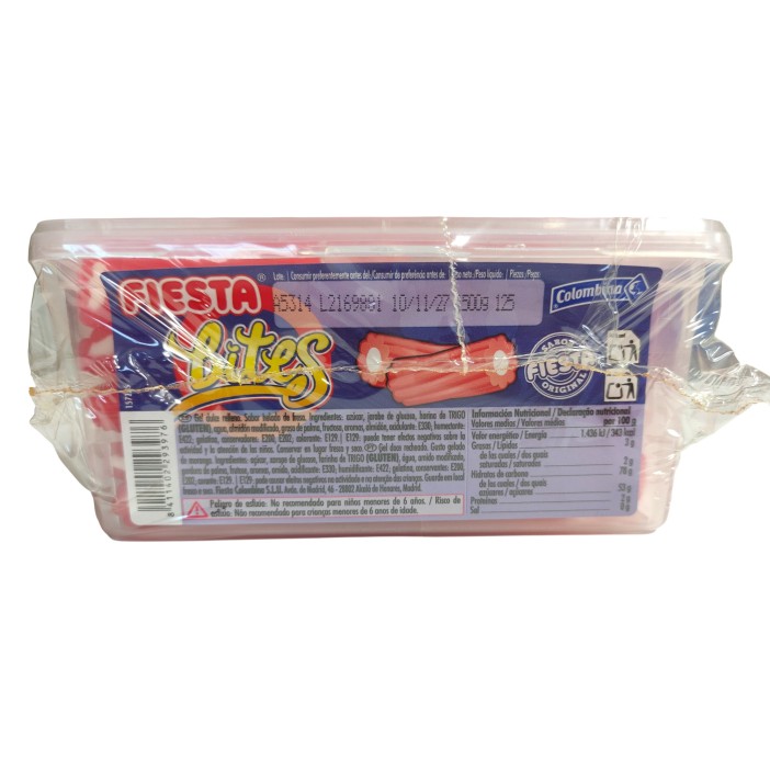 Ingrédients: Sucre, sirop de glucose, eau, farine de blé, amidon modifié, graisse de palme, fructose, amidon, arômes, acidulanet : E330 ; conservateurs : E200, E202 ; régulateur d’acidité : E331 ; colorants : E129 ; gélatine, humectant : E422.